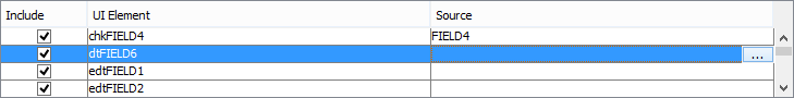 In the Load UI Elements section, tick the Include checkbox besides the form control name that the data is to be loaded to. The ellipse/cutomizer button will appear in the Source column for that control as shown below.
