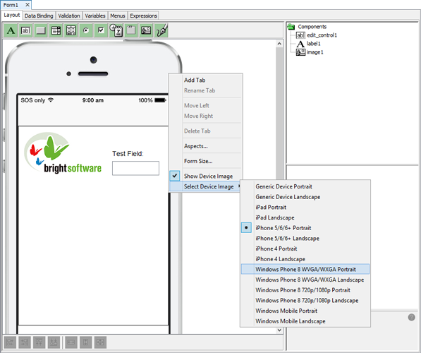 will create the form with the target device's image applied.