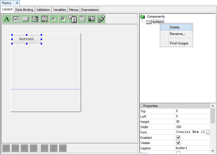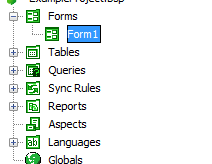 Expand the Forms sub tree to verify the addition of a new form; it will also be automatically opened in the Editor window.