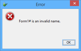 A valid form name begins with a letter and may be followed by