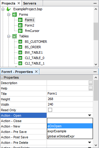 | Action - Open | Specifies an expression, which is triggered when the form is opened. |