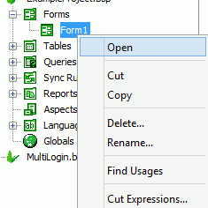 Right-click on Forms sub tree