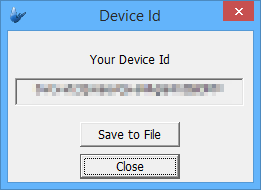 It also has a Show Device ID button, once clicked; it will show the Device Id dialog such as the one below. This is for licensing procedure, since BrightForms is registered or licensed per device.