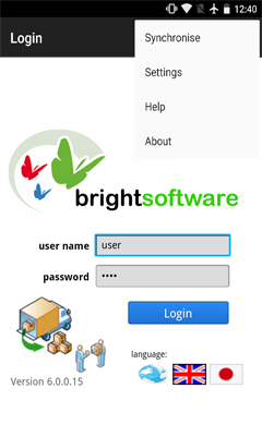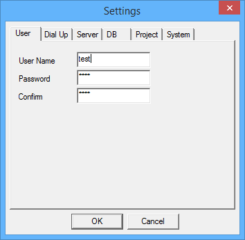 The User tab as shown below allows the end user to enter their user name and password. This data will be used to authorize synchronisation with the server. The system administrator will distribute the user names and passwords for the end users. Administration and maintenance of users is done through the BrightServer Mobile Data Gateway user interface.