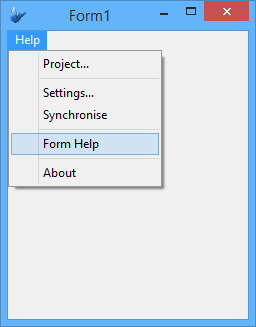 This menu will display the help dialog that is attached to the form. This help dialog can be set by the user in the Form Properties.