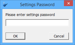 The following dialog will be displayed when the password protected Settings menu is clicked.
