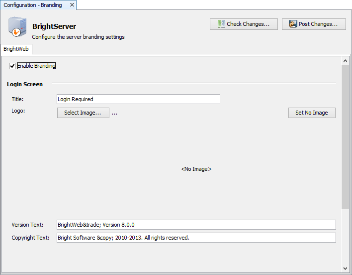 The 'Branding' feature of BrightServer allows changes to be made to the default BrightWeb login page which is displayed at the BrightServer URL page.