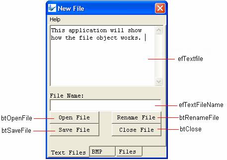 efFileName – an edit control to let users enter the file to delete. If users did not enter a file name, the application prompts the user for the file to delete with the ShowFileOpenDialog method.